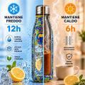 Scopri la bottiglia termica dal design unico ispirato alle maioliche italiane, perfetta per unire stile e funzionalita in un unico prodotto. Realizzata in acciaio inox di alta qualita con tecnologia a doppia camera isolante, mantiene le bevande fredde fino a 12 ore e calde fino a 6 ore, garantendo sempre la temperatura ideale in ogni momento della giornata.