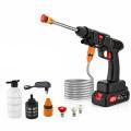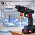 L'idropulitrice portatile a batteria è lo strumento perfetto per una pulizia versatile ed efficace. Grazie alla sua potenza e portabilità, è ideale per lavare auto, moto, barche, vialetti, giardini, porte, finestre e altre superfici che richiedono un'alta pressione per rimuovere sporco, detriti, polvere e olio. La batteria agli ioni di litio da 48V garantisce una lunga durata e permette di utilizzare l'idropulitrice ovunque, senza bisogno di prese elettriche. Dotata di 2 ugelli regolabili, offre diverse modalità di spruzzo, da un getto diretto a un flusso a ventaglio, facilmente modificabili ruotando l'ugello. Il serbatoio per il sapone integrato consente di distribuire detergenti per una pulizia più profonda. Grazie alla pratica valigetta da trasporto e al tubo lungo 5 metri, questa idropulitrice è facile da maneggiare e trasportare. Perfetta per lavare veicoli, irrigare giardini e pulire spazi esterni con efficienza e praticità.