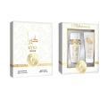 Regalati o dona un tocco di pura eleganza con il set Afaq Kyra Blanche. Questo raffinato cofanetto unisce il profumo intenso e luminoso di Blanche con una lozione corpo profumata e idratante, perfetta per esaltare la femminilità e lasciare una scia delicata e duratura.Contenuto del set: -Eau de Parfum 100ml – Una fragranza sofisticata e moderna, con un cuore floreale su una base muschiata e avvolgente. -Body Lotion 150ml – Lozione corpo leggera e profumata, ideale per nutrire la pelle e prolungare la durata del profumo. Perfetto come idea regalo o per coccolarsi ogni giorno con un tocco di lusso.
