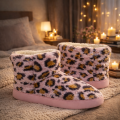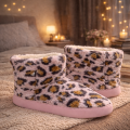 Avvolgenti, morbide e irresistibilmente cozy, queste ciabatte a stivaletto in pelliccia sintetica effetto animalier sono pensate per regalarti il massimo comfort nei momenti di relax a casa. Il rivestimento esterno soffice al tatto, con elegante fantasia leopardata su base rosa, dona un tocco glamour anche ai look da casa.
