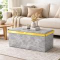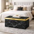 Pouf Contenitore Effetto Marmo con Coperchio Dorato Organizer Elegante Multiuso
