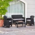 Caratteristiche principali: -Due configurazioni disponibili: 3 pezzi: con 2 poltrone e tavolino 4 pezzi: con divanetto 2 posti, 2 poltrone e tavolino -Effetto rattan elegante e moderno -Cuscini inclusi per massimo comfort -Struttura resistente -Ideale per giardino terrazzo e balcone -Facile montaggio e manutenzione zero