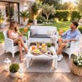 Set Giardino Con Tavolino e Cuscini Effetto Rattan