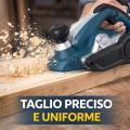 La larghezza di piallatura da 82 mm assicura lavorazioni rapide su tavole e travi, mentre il design ergonomico garantisce comfort anche durante utilizzi prolungati.