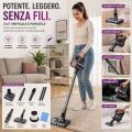 Il design leggero e maneggevole, unito alla funzione senza fili, assicura libertà totale nei movimenti, rendendo ogni operazione veloce e semplice. Perfetto per pavimenti, tappeti, materassi, interni auto e superfici delicate.