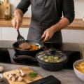 Porta in cucina praticita e stile con questo set padelle 7 pezzi effetto pietra lavica, pensato per offrire prestazioni elevate e massima comodita nell uso quotidiano. Il rivestimento antiaderente effetto pietra garantisce una cottura uniforme senza che gli alimenti si attacchino, permettendoti di cucinare in modo piu sano con meno olio. Il set include diverse padelle con coperchio in vetro temperato dotato di foro di sfiato, ideale per controllare la cottura senza disperdere calore. Il mestolo incluso completa il kit rendendolo subito pronto all uso. I manici ergonomici soft touch assicurano una presa salda e sicura durante ogni preparazione. Grazie al fondo compatibile con tutti i piani cottura, inclusa induzione, queste padelle si adattano perfettamente a ogni cucina, garantendo versatilita e prestazioni affidabili nel tempo. Disponibile in tre eleganti varianti colore nero beige e grigio, si adatta facilmente a qualsiasi stile di cucina.