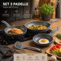 Set Padelle 7 Pezzi Effetto Pietra Lavica Antiaderenti con Coperchio e Mestolo