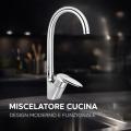 Rubinetto Miscelatore Canna Alta Girevole Cromato con Leva Monocomando