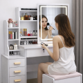 Toeletta Per Trucco con Specchio Contenitore Scorrevole, LED e Sgabello