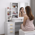 Toeletta trucco dal design moderno e funzionale pensata per organizzare al meglio cosmetici accessori e prodotti beauty in un unico spazio pratico ed elegante Struttura solida con finitura curata ideale per adattarsi perfettamente a ogni camera da letto o cameretta Dotata di ampio piano d appoggio specchio integrato vano contenitore con ripiani e comoda cassettiera laterale perfetta per mantenere tutto in ordine Lo sgabello coordinato con seduta imbottita garantisce comfort durante la routine quotidiana di make up skincare e hair styling Dimensioni compatte ma capienti ideali anche per ambienti con poco spazio Facile da montare resistente all uso quotidiano e perfetta sia per adulti che per ragazze Una soluzione completa che unisce estetica praticita e organizzazione valorizzando ogni angolo beauty della casa.
